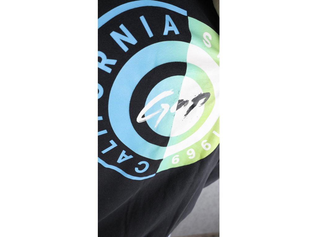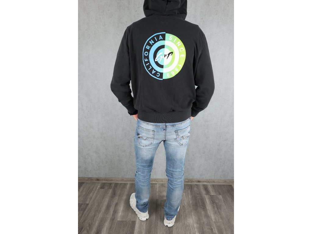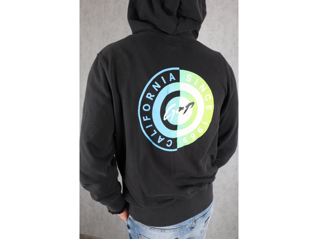 Černá mikina s kapucí a velikým logem GAP na zádech, nejspíše chvíli nošená, logo na zádech má mírné prasklinky-viz foto. Jinak v moc hezkém stavu.
