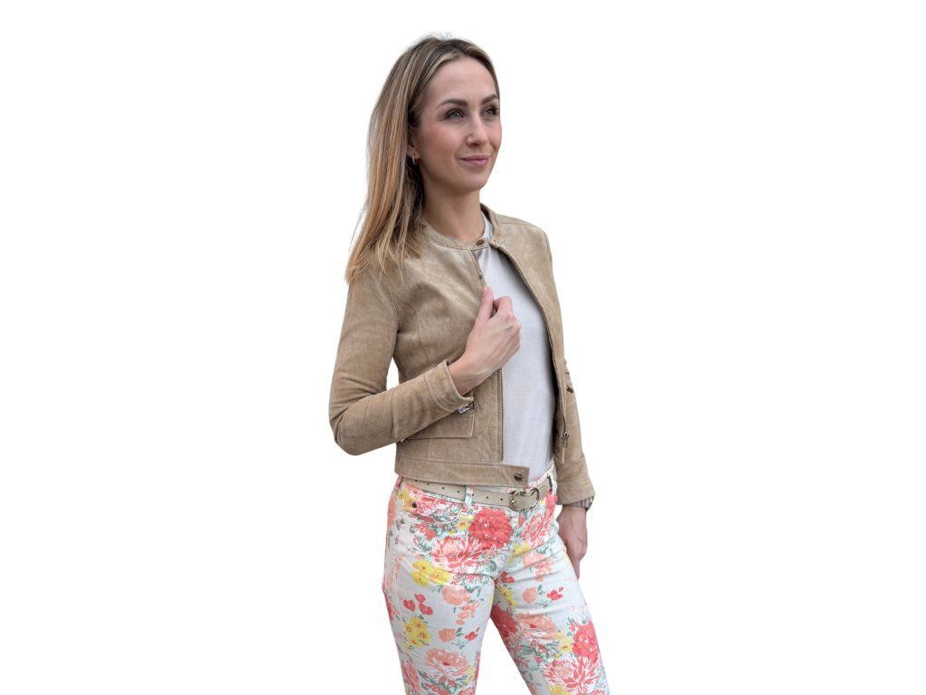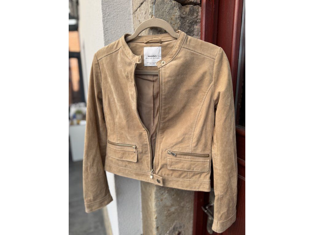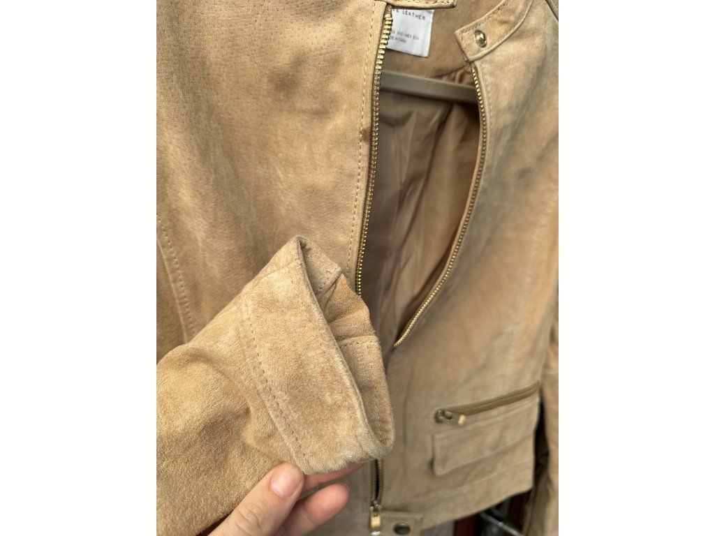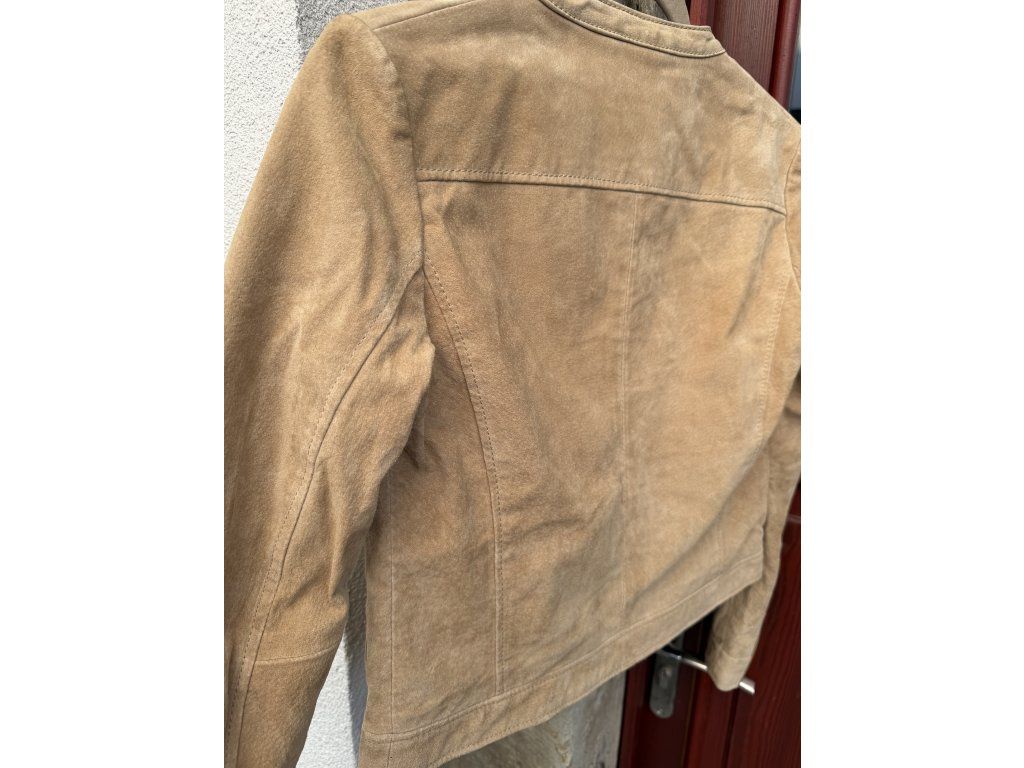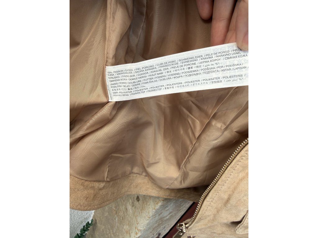 Béžová/hnědá kožená bundička. Velikost XS. Skvěle vypadá k riflím na tričko, je v hezkém stavu, zoubek nošení je lehce vidět na bundě, ale žádné velké vady nemá, kolem zipu je jen malý tmavší flíček. Kdyby byla větší-nechám si ji pro sebe 😊. Materiál: 100% prasečí kůže.