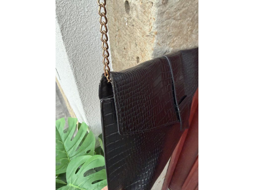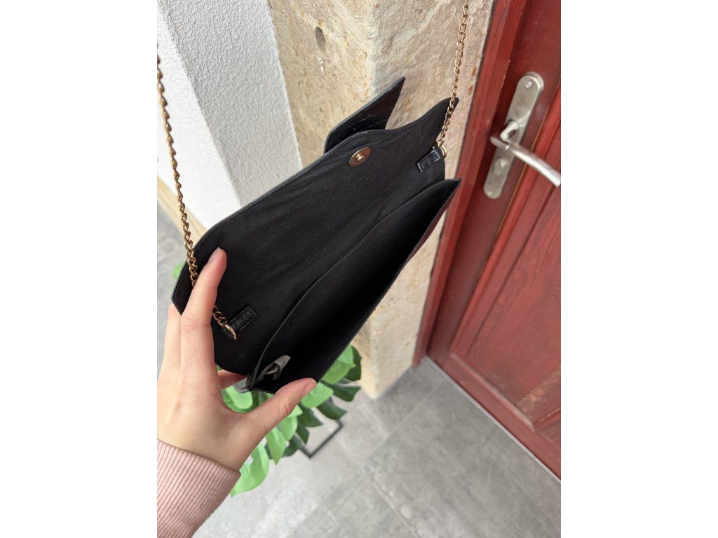 Dámská kabelka s řetízkem, krásný design. Na stranách, kde je řetízek v kontaktu s kabelkou, tak jsou lehounce otrhané hrany a řetízek má trochu jiné zbarvení. Jinak na kabelce nikde jiný škrábanec ani odřenina není. Zapínání na patentek.
