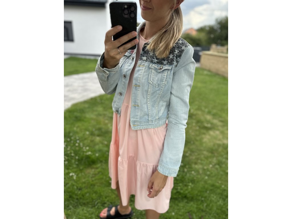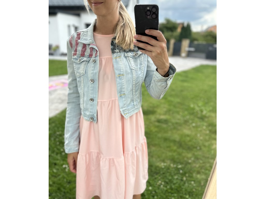 Krásná džínová bunda ve velikosti M-sedne hezky, níže jsou rozměry. Univerzální kousek, na šaty, na tričko :). Ve skvělém stavu, bez vady. Materiál: viskóza, polyester, bavlna.