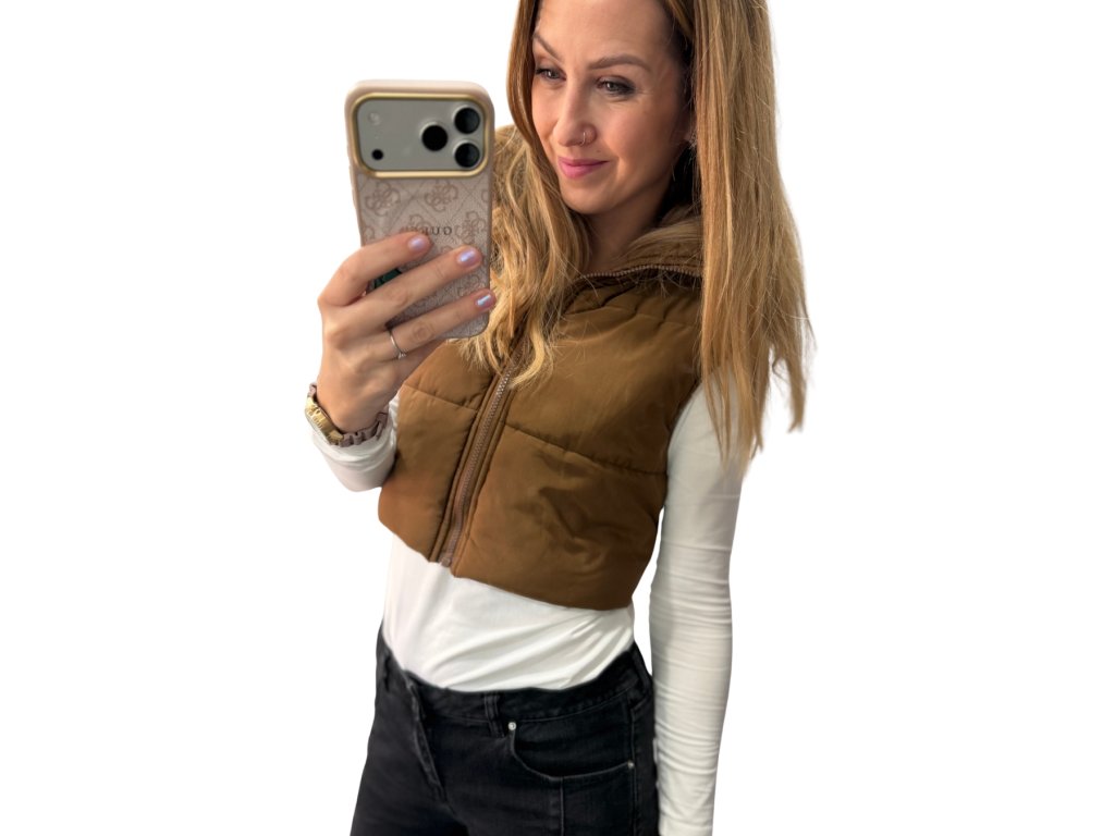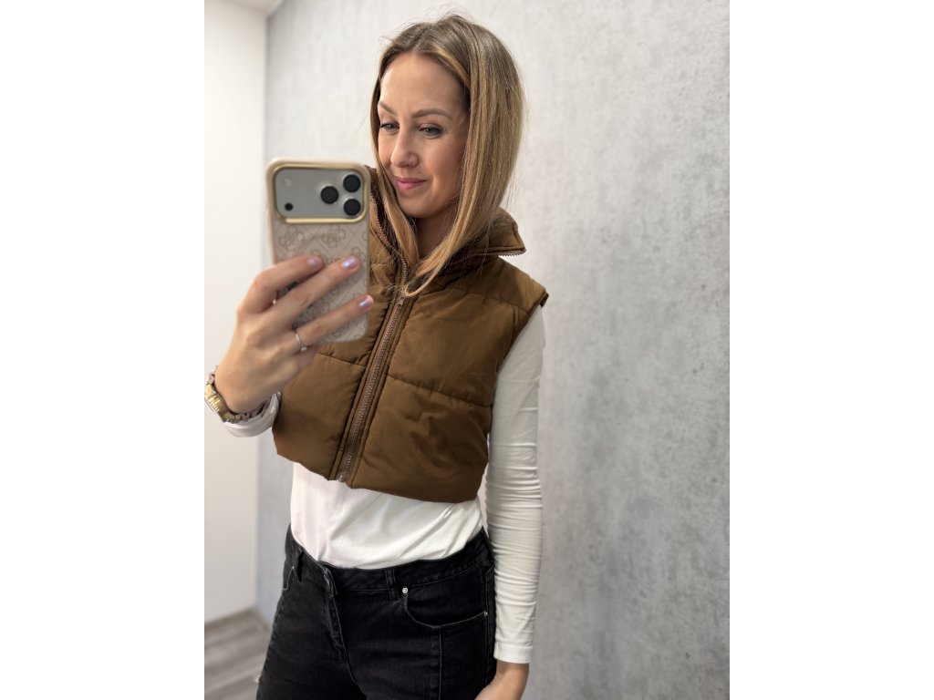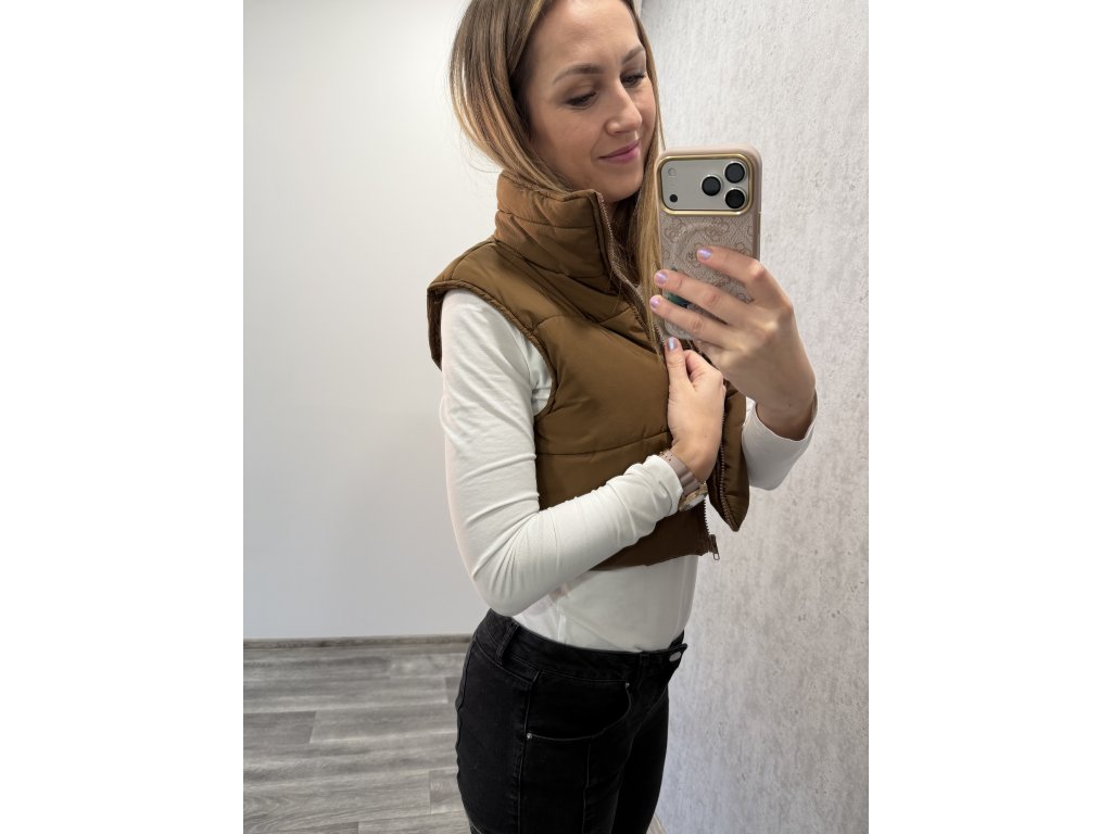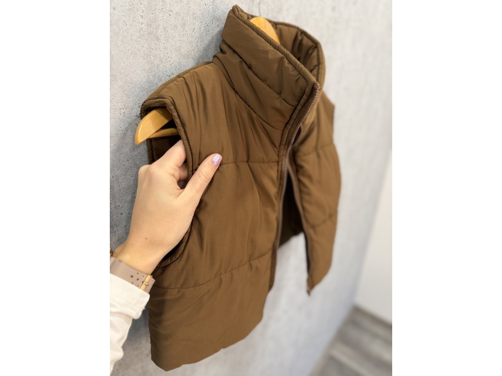 Čokoládová hnědá vesta, sedne nejlépe Mku. V krásném stavu jako nová. Materiál: 100% polyester.