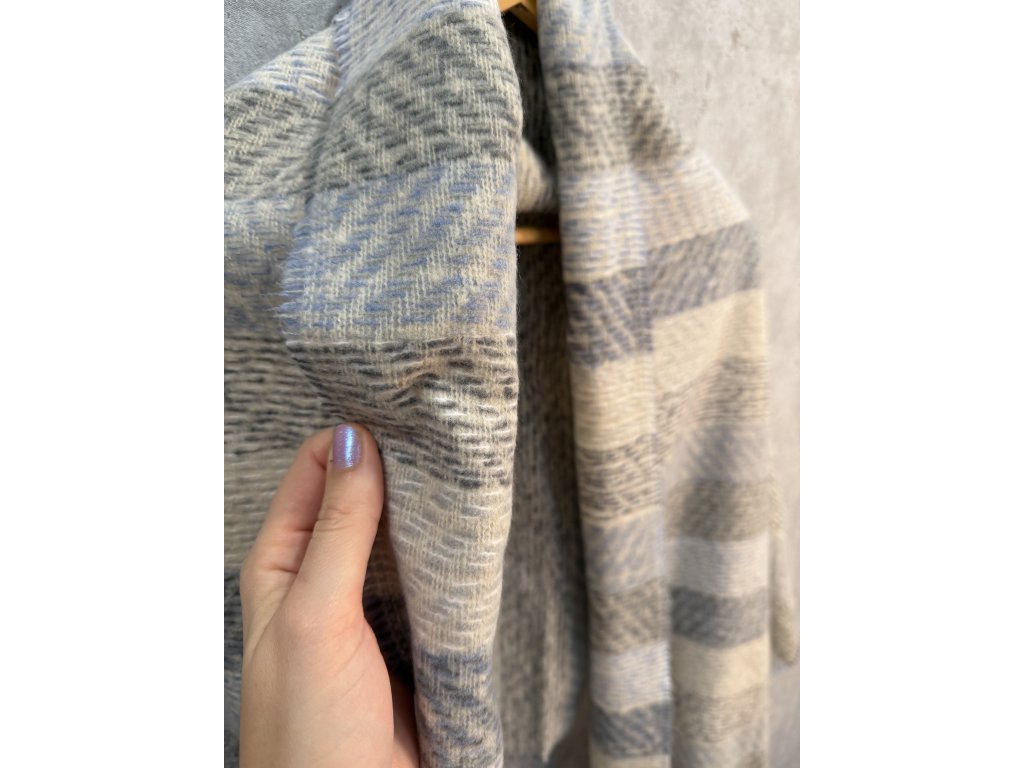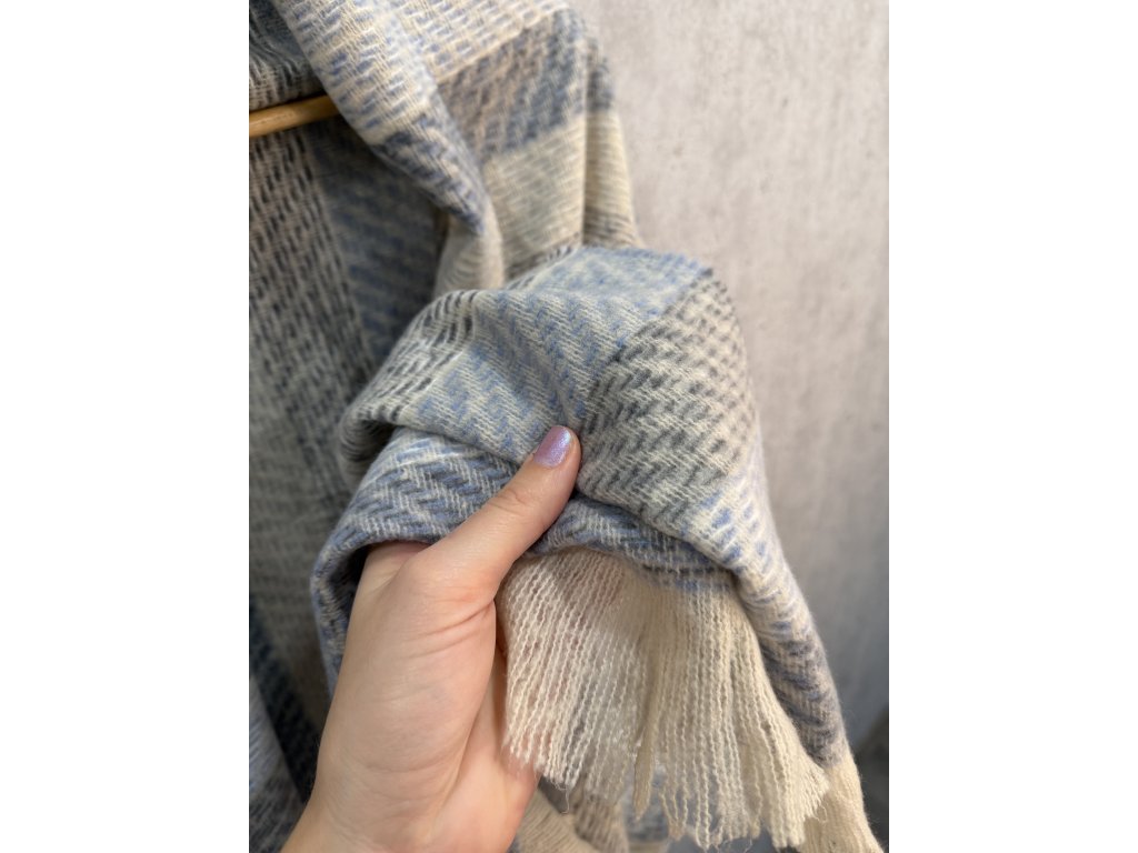 Barvička bledě modrá/šedá. V krásném stavu, jako nová, měkoučká a teplá, nikde nekouše. Materiál: 100% polyester