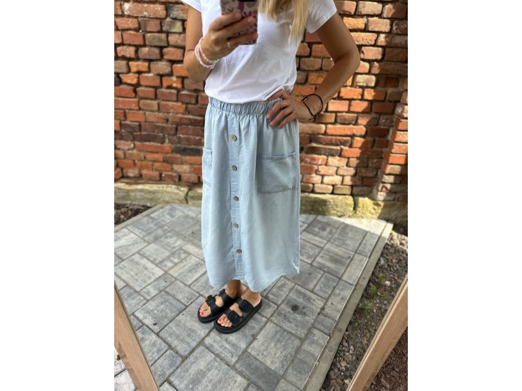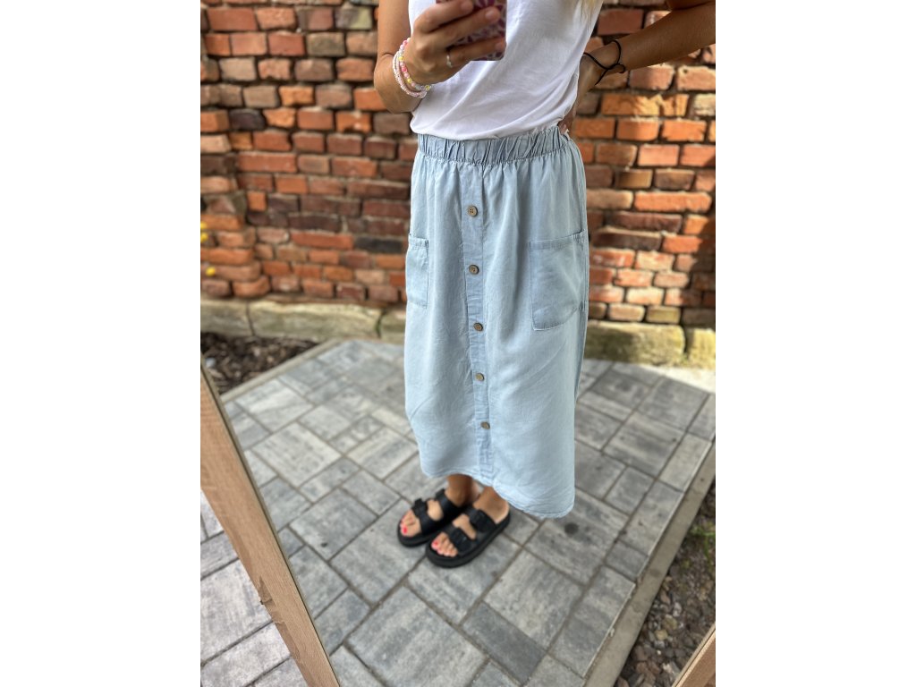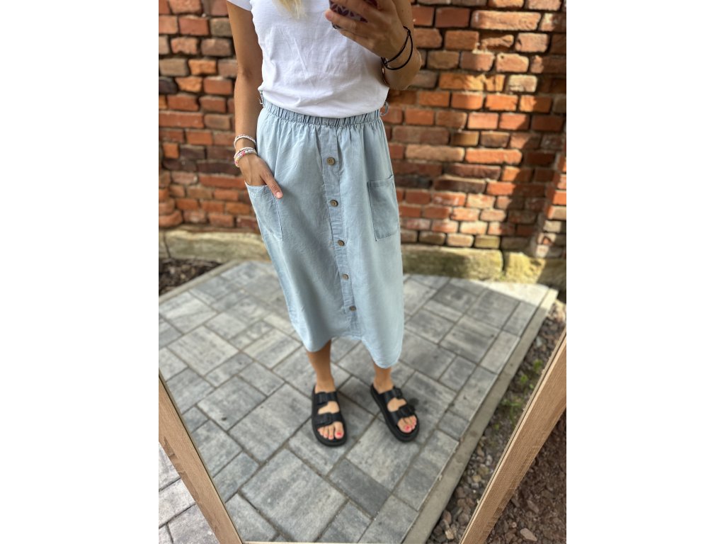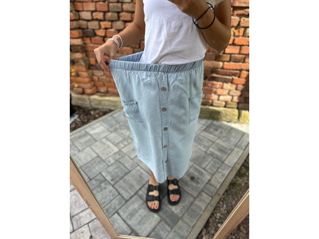 Dámská příjemná tencelová sukně MADE IN ITALY, díky gumě v pase sedne od velikosti M-XL. Níže jsou rozměry. Materiál: 100% tencel.