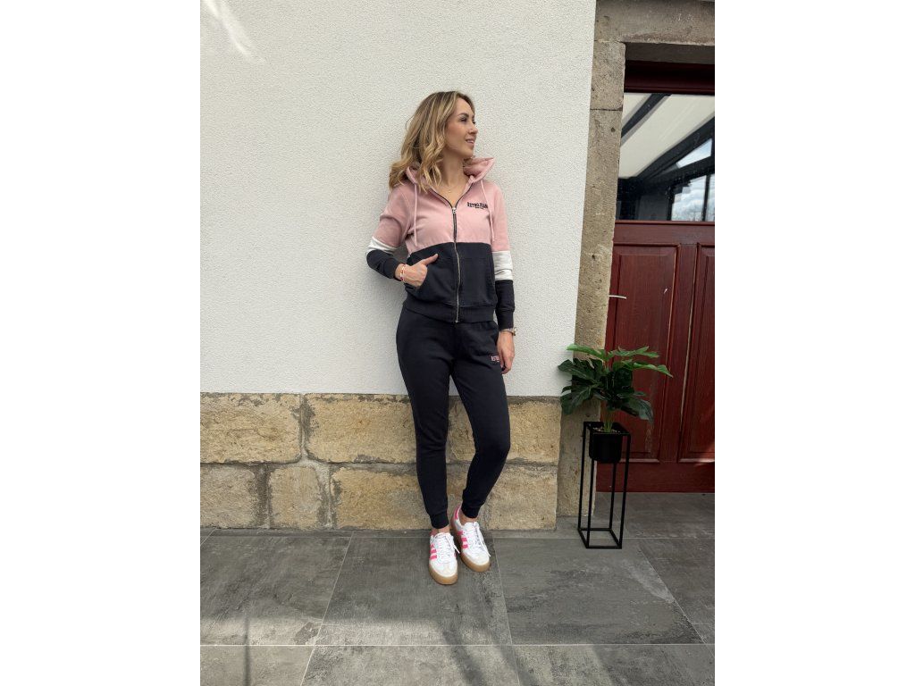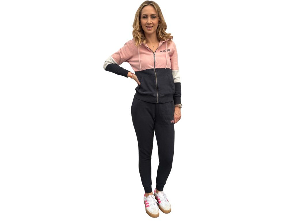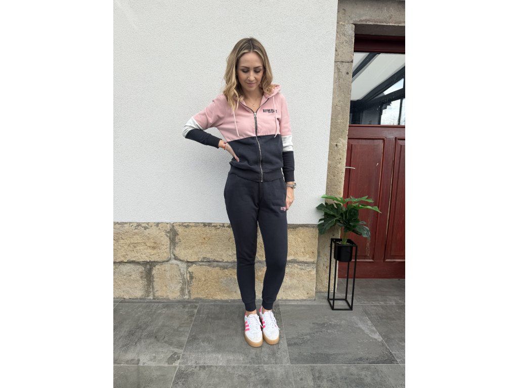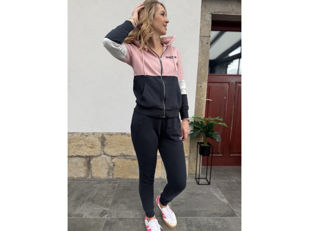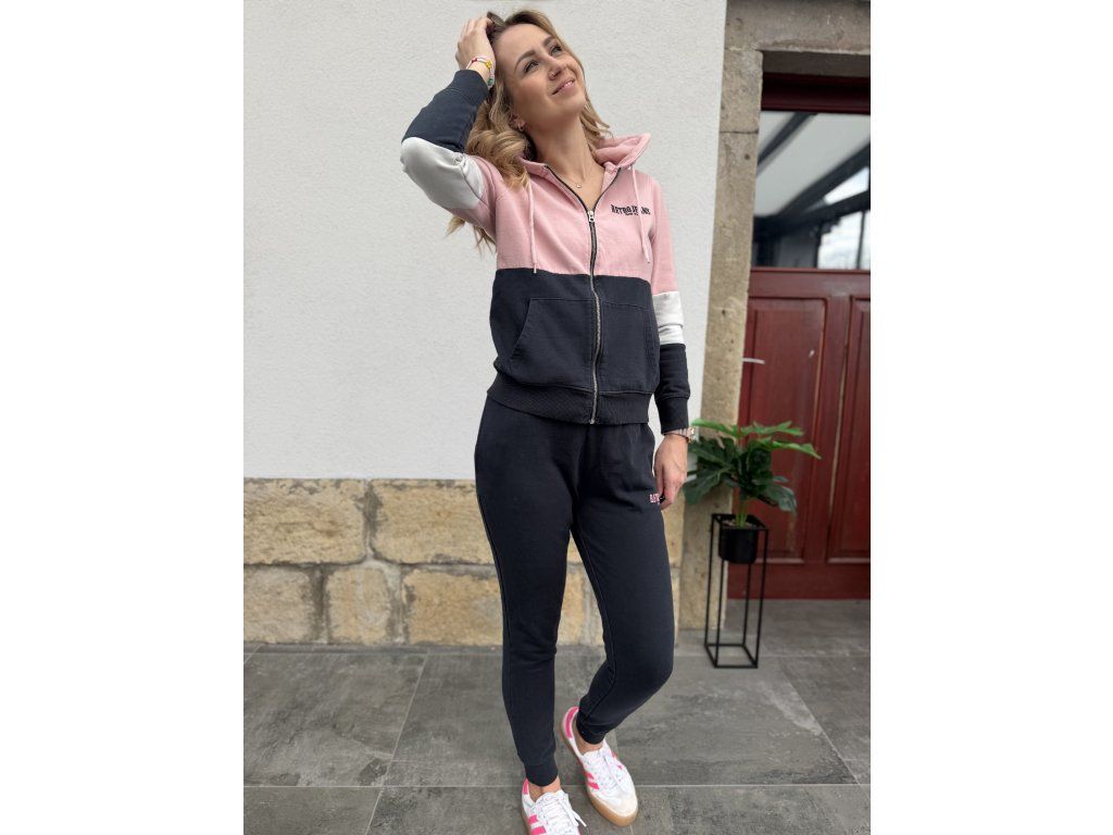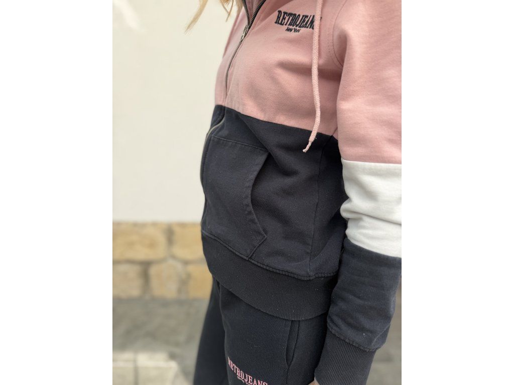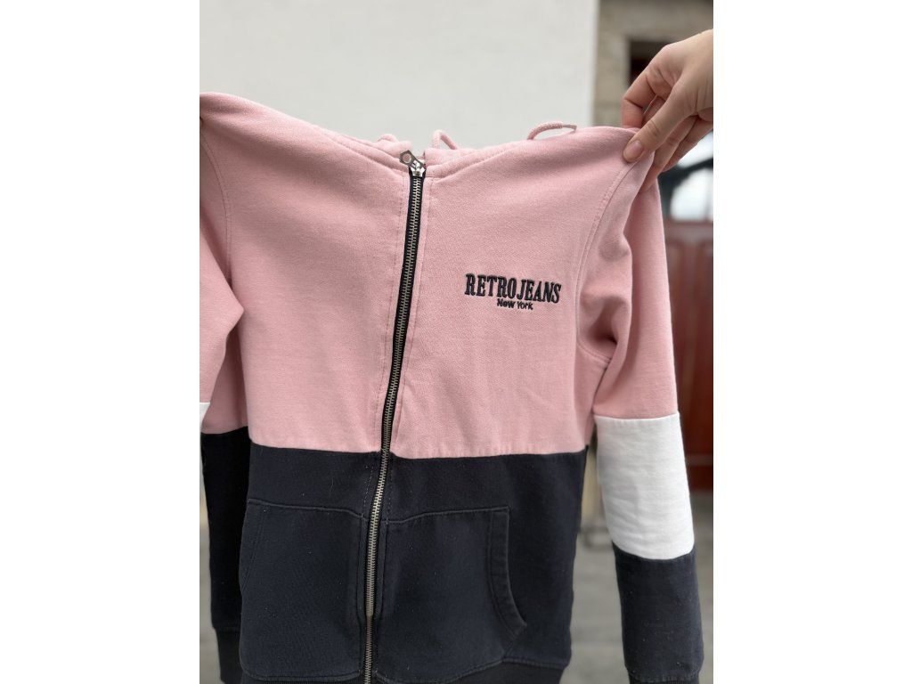 Tepláková souprava Retro Jeans, velikost mikiny uvedena L, ale sedne nejlépe Sku, já nosím běžně M a je mi těsnější. Kalhoty velikost M a taky sednou menší, Má na sobě známky nošení-žmolíky a lehce sepraná barva. Materiál: 60% bavlna, 40% polyester.