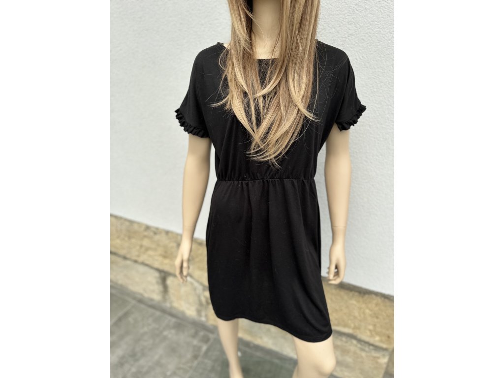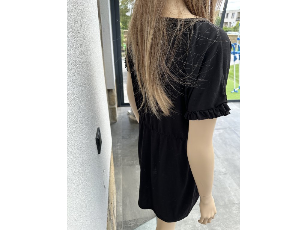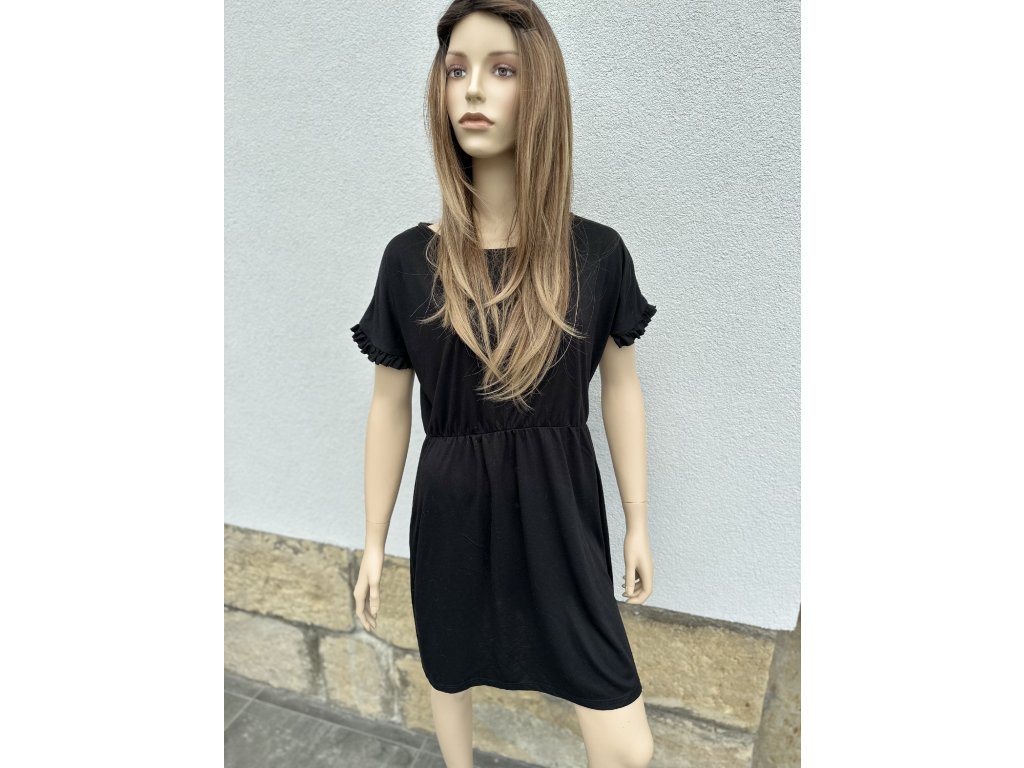 Černé šaty velikosti M, minimálně nošené. V pase jsou na gumu, mají volnější, netopýří rukávy.