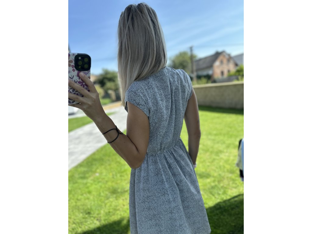 Dámské šaty z příjemného, lehkého materiálu, nejsou podšité. Vpředu efektní zip. Velikost uvedena 38, sednou hezky. Materiál: 100% polyester.