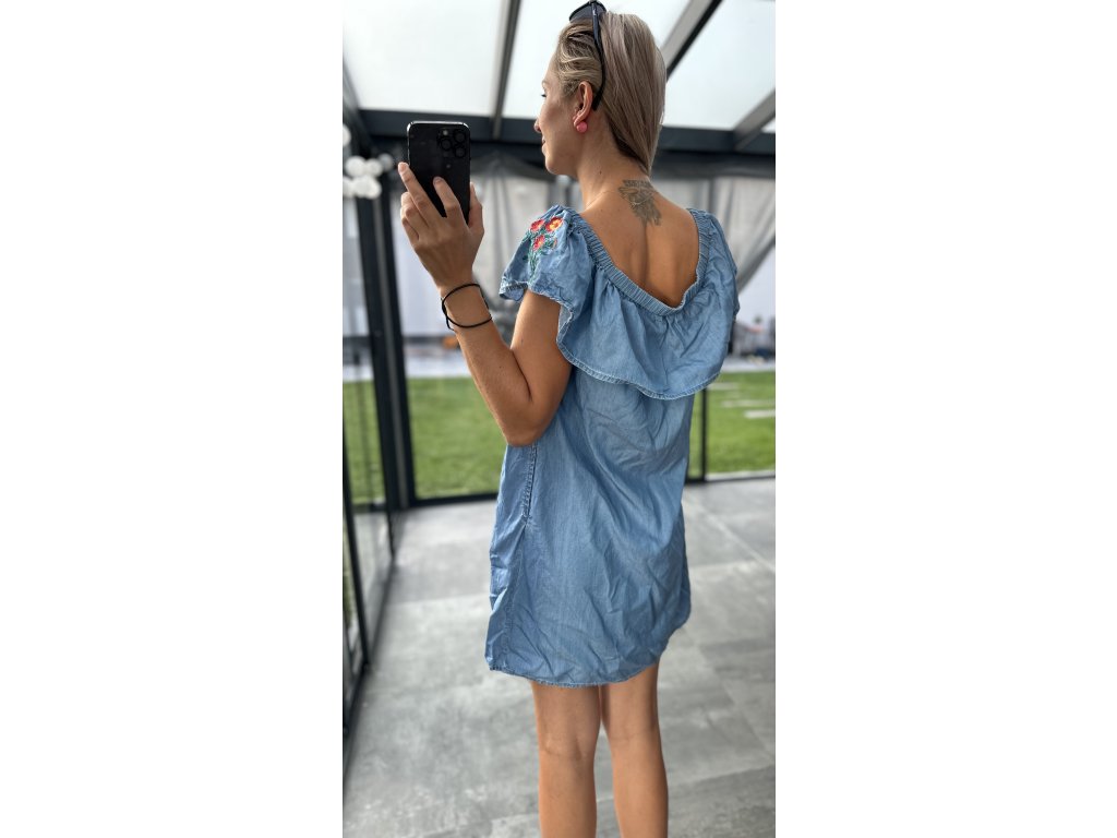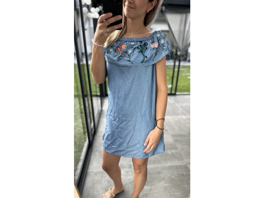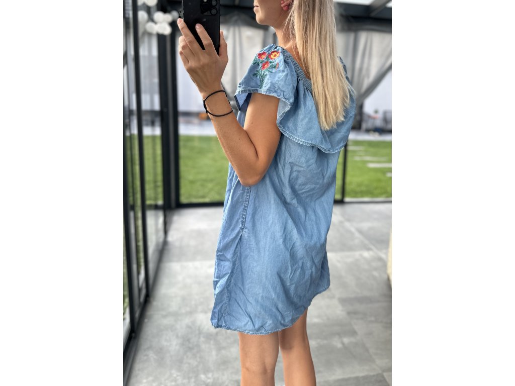 Lehké dámské šaty s vyšívanými kytičkami, značka F&F, velikost uvedena 40, sednou hezky i Mku. Mají kapsy, v moc hezkém stavu. Materiál: 100% lyocel.