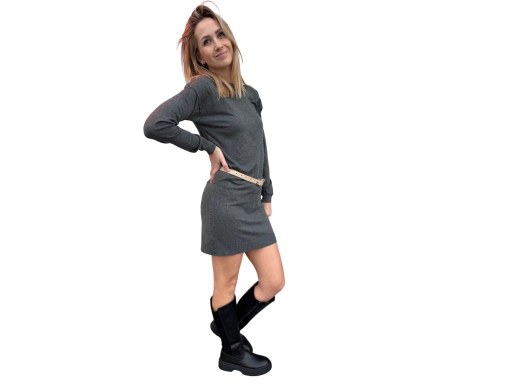 Měkoučké, příjemné šedé šaty ve velikosti S. V pohodě oblékne i Mko. V hezkém stavu, sem tam žmolík, nošené. Mají lodičkový výstřih. Materiál: 81% viskóza, 19% polyamid. Pásek není součástí.