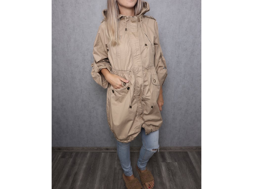 Krásný béžový nadčasový kabát s rozšířenými rukávy, které se dají stáhnout. V pase je na stažení, vzadu taky. velikost uvedena 42, ale skvěle sedne i jako oversized střih :). Je jako nový, vypadá opravdu nenošeně. Materiál: 100% bavlna.
