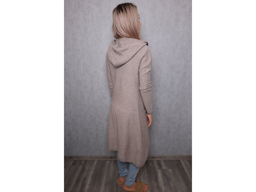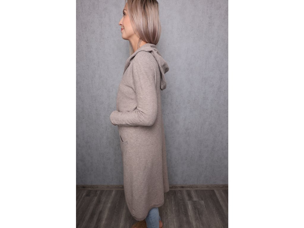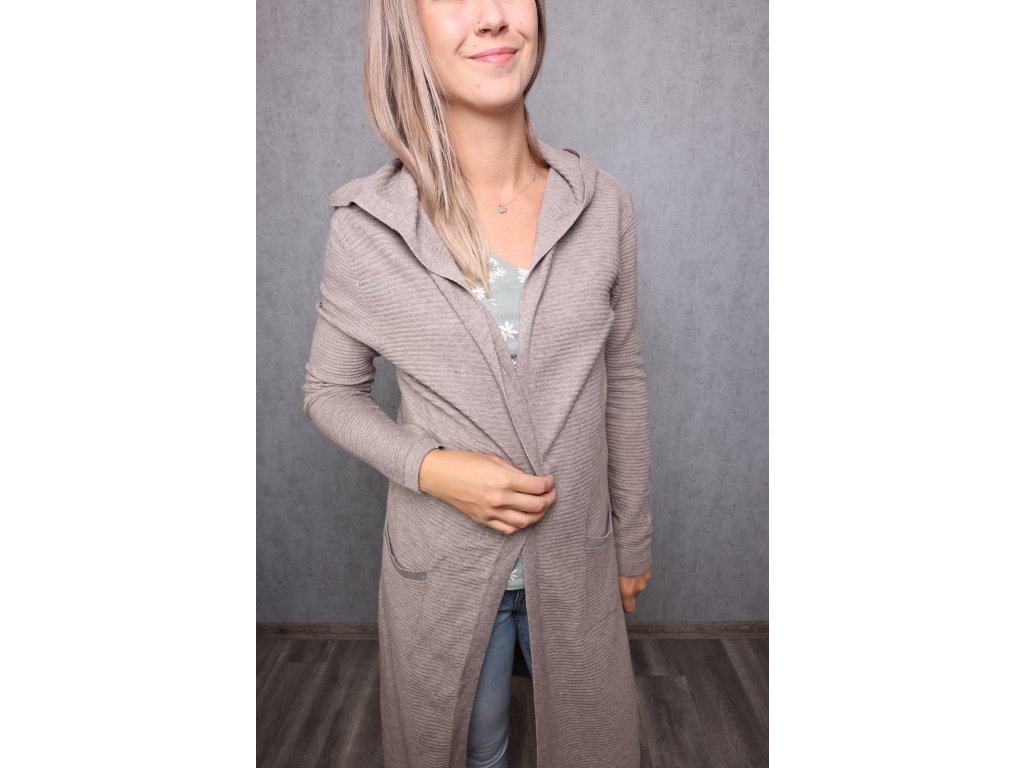 Dámský dlouhý žebrovaný kardigan s kapucí