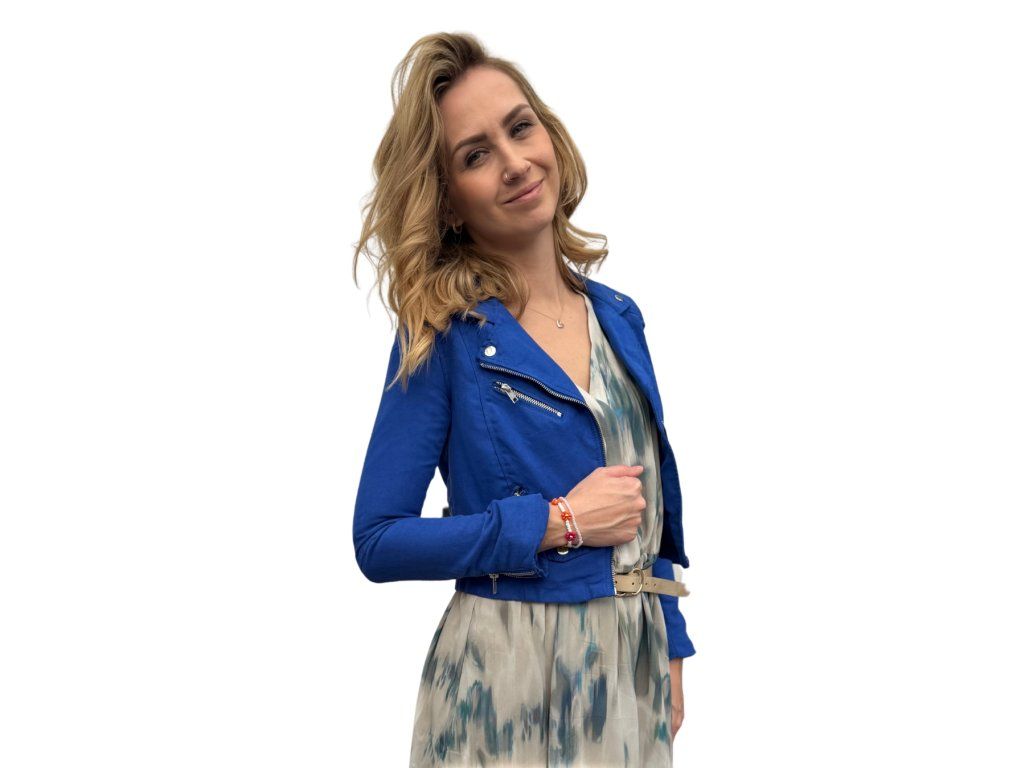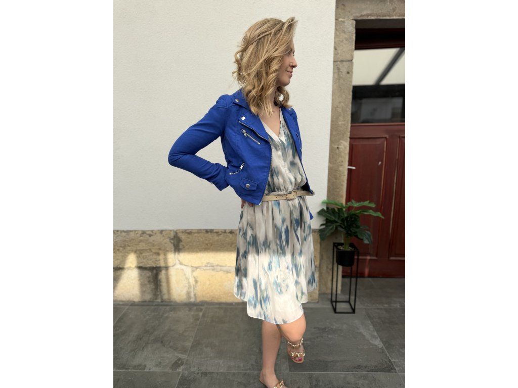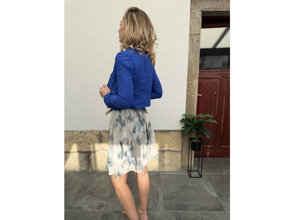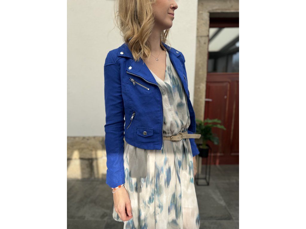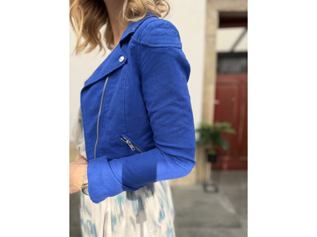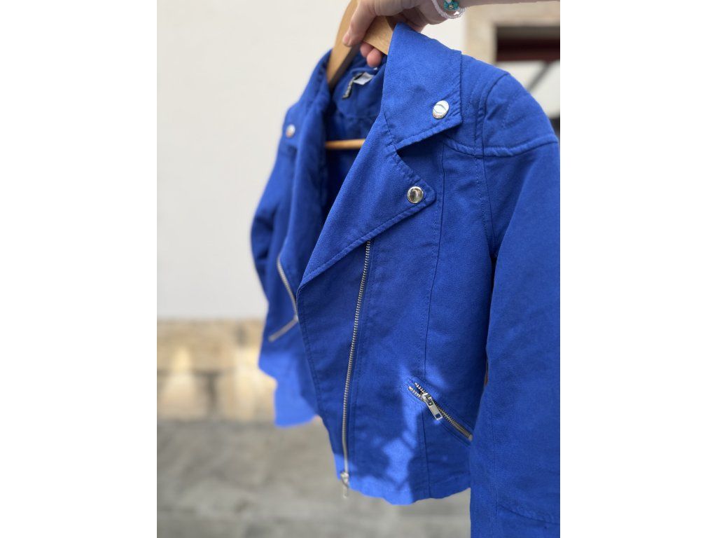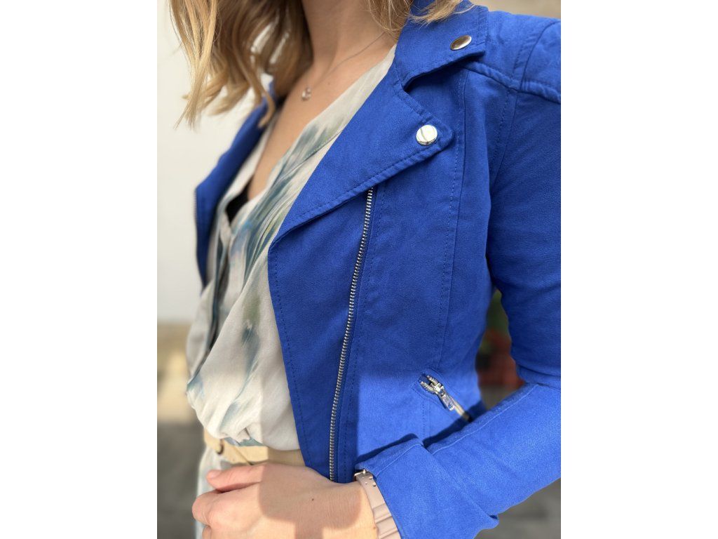 Dámský královsky modrý křivák, velikost XS/34, oblékne nejspíš i Sko. Na omak je to semiš, v krásném stavu, bez vady. materiál: 100% polyester.