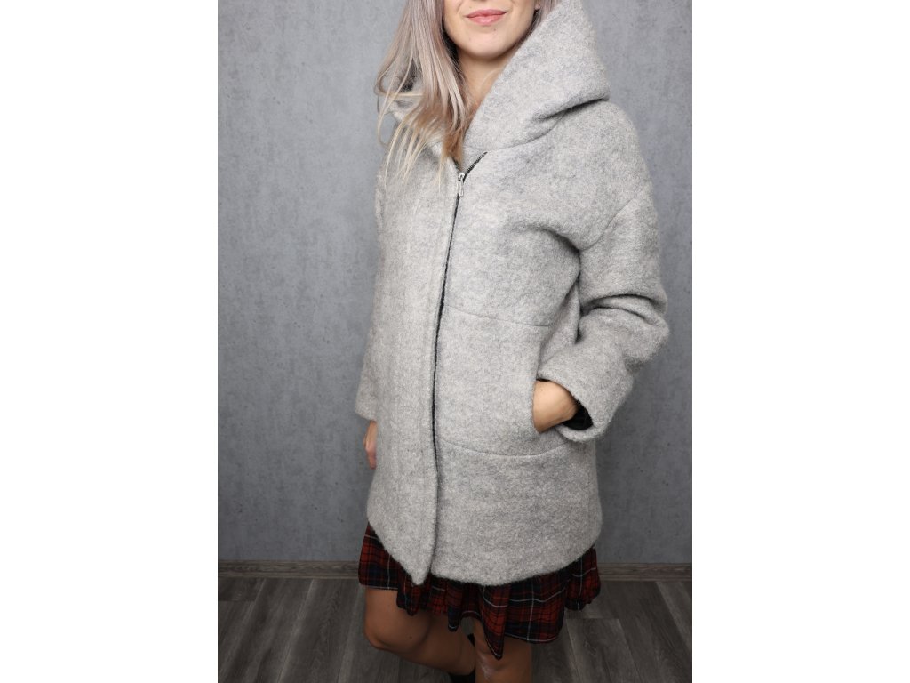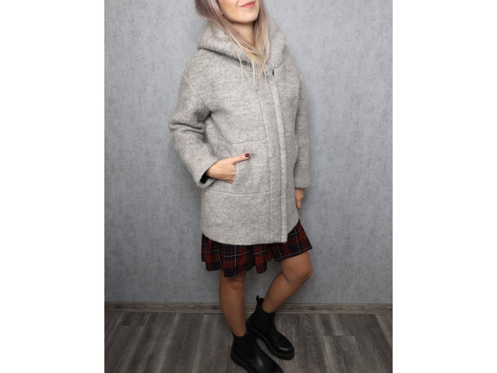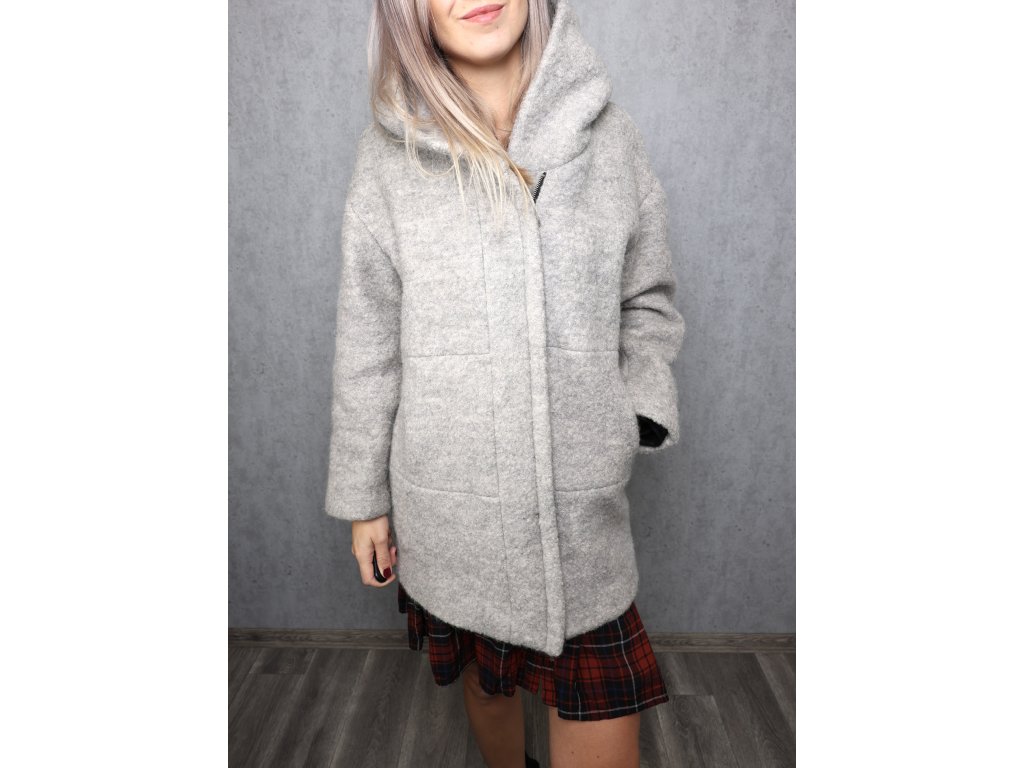 Šedý kabát s velikou kapucí a na zip. Má kapsy, vypadá skvěle! Velikost S, sedne krádně Mku. V moc hezkém stavu, bez vady. Materiál: 72% vlna, 28% polyester. Podšívka: 100% polyester.