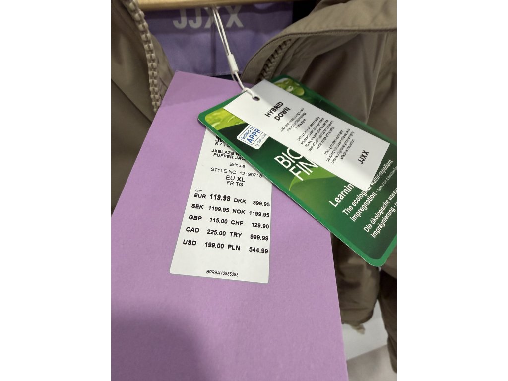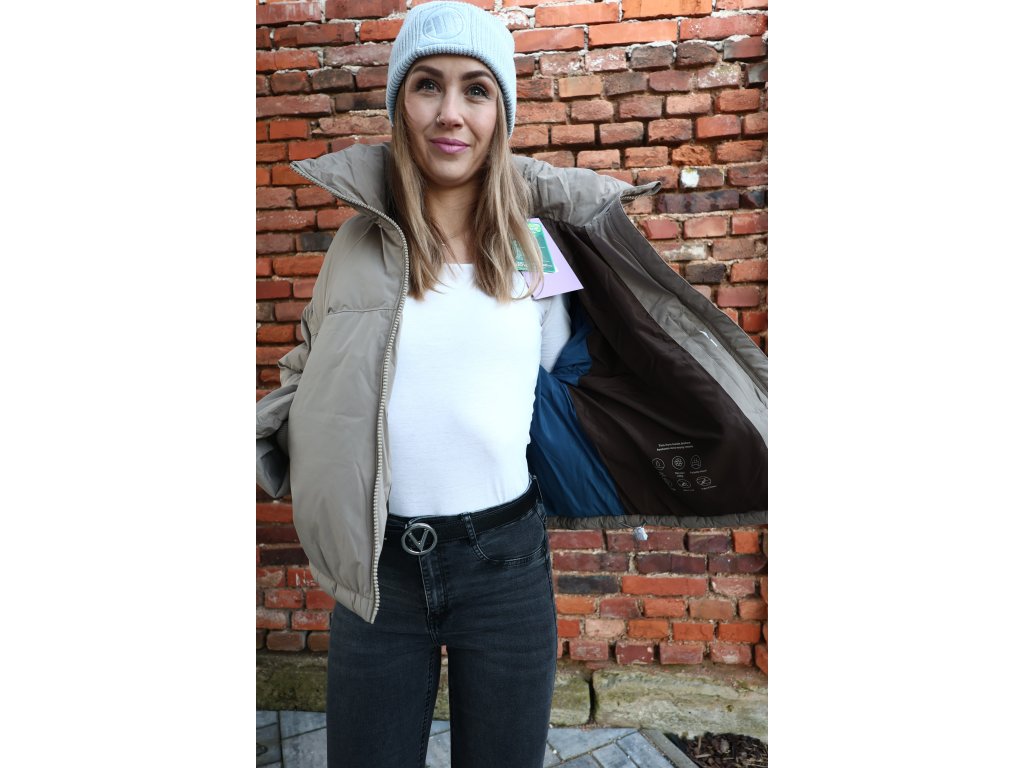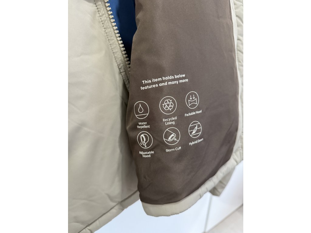 Nová bundička v barvě béžovo/khaki. Velikost XL. V límci má schovanou kapuci, materiál je peří a syntetika, což zaručuje lehkou, ale účinnou izolaci. Prodejní cena: 119,99 euro (cca 2.800,- Kč). Dole se dá stáhnout.
