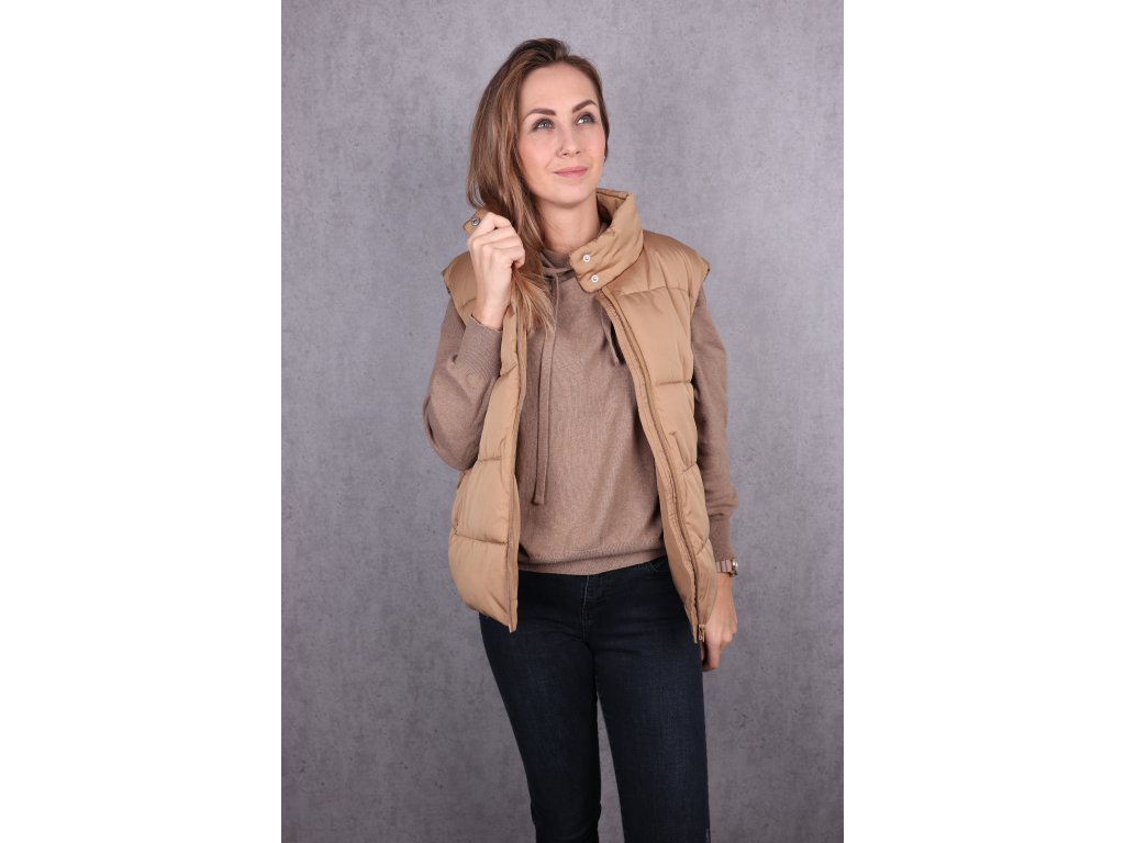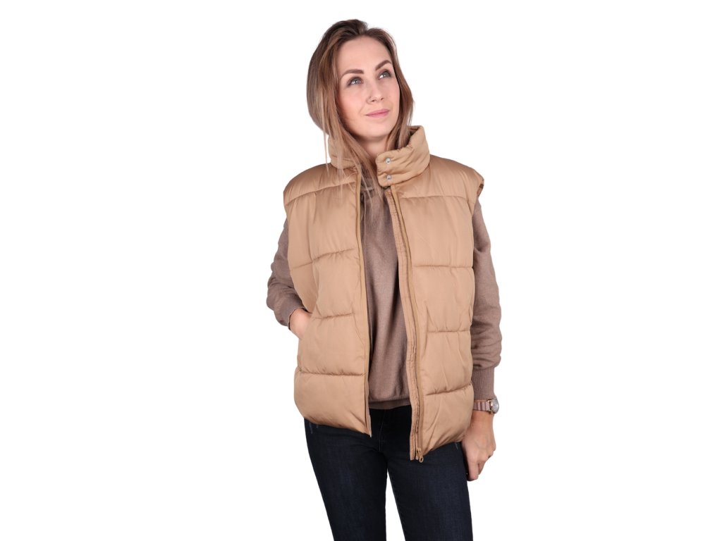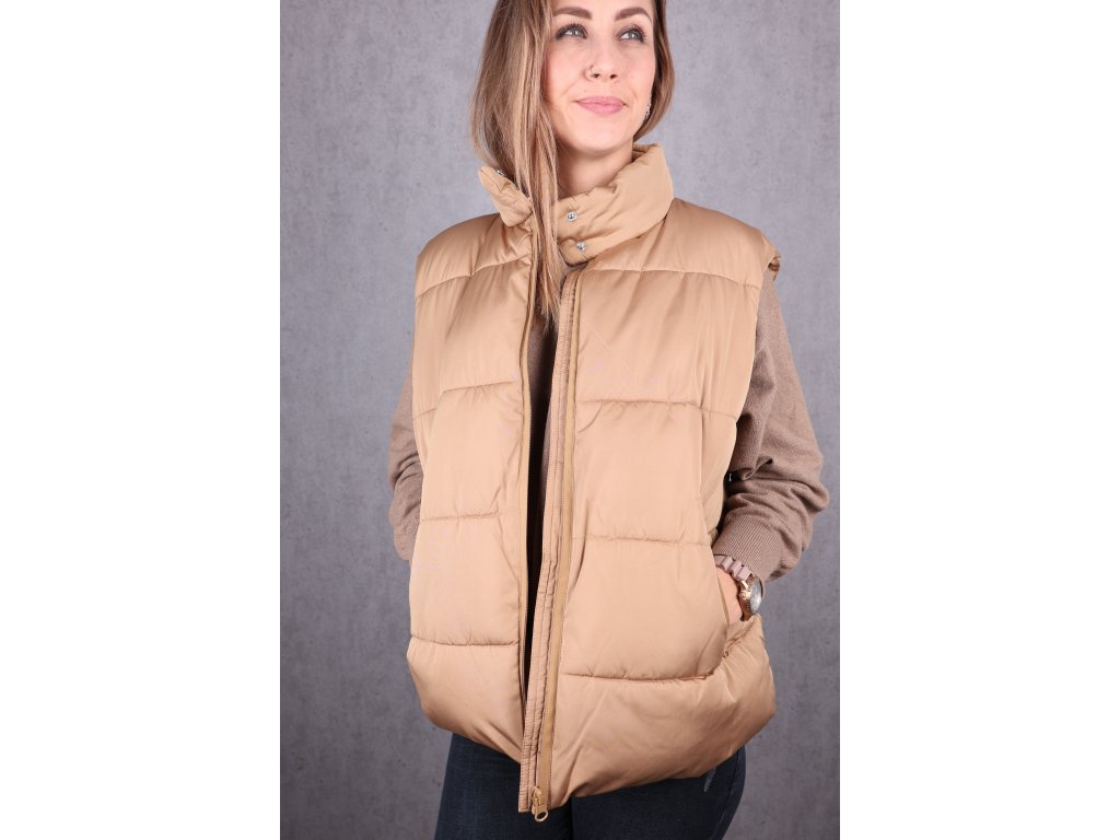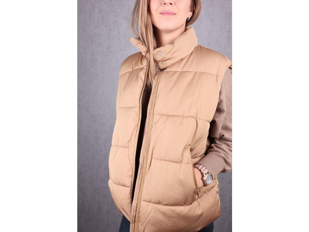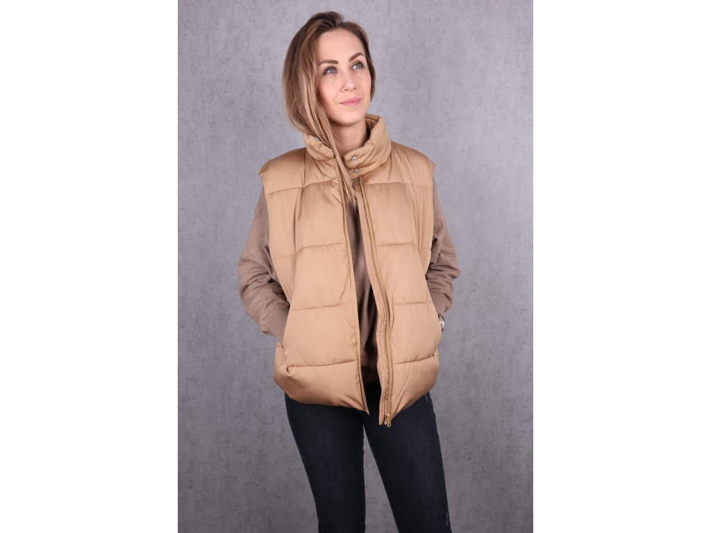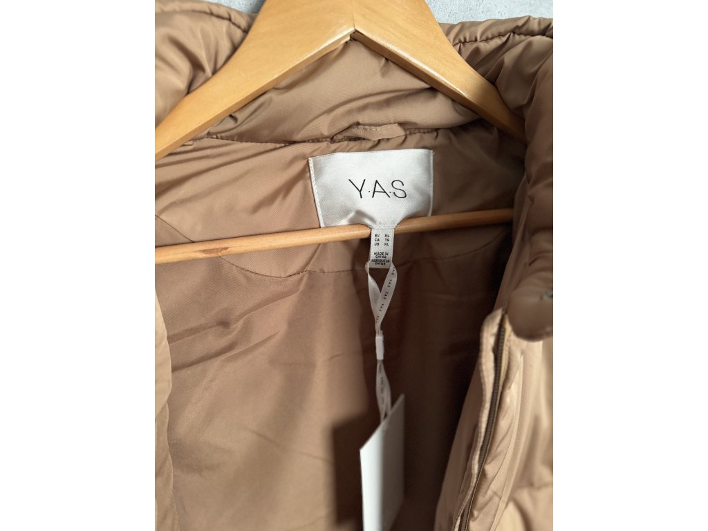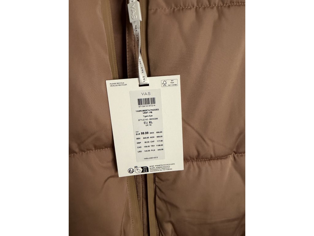Krásná nová béžová/camel vesta značky YAS. Velikost uvedena XL, ale určitě sedne menší- nejlépe tak Lku. Níže jsou rozměry. Materiál: polyester. Původní cena 99 euro (cca 2.400,- Kč). Je na zip a u krku na dva patentky.