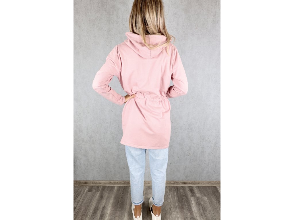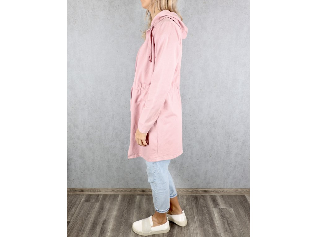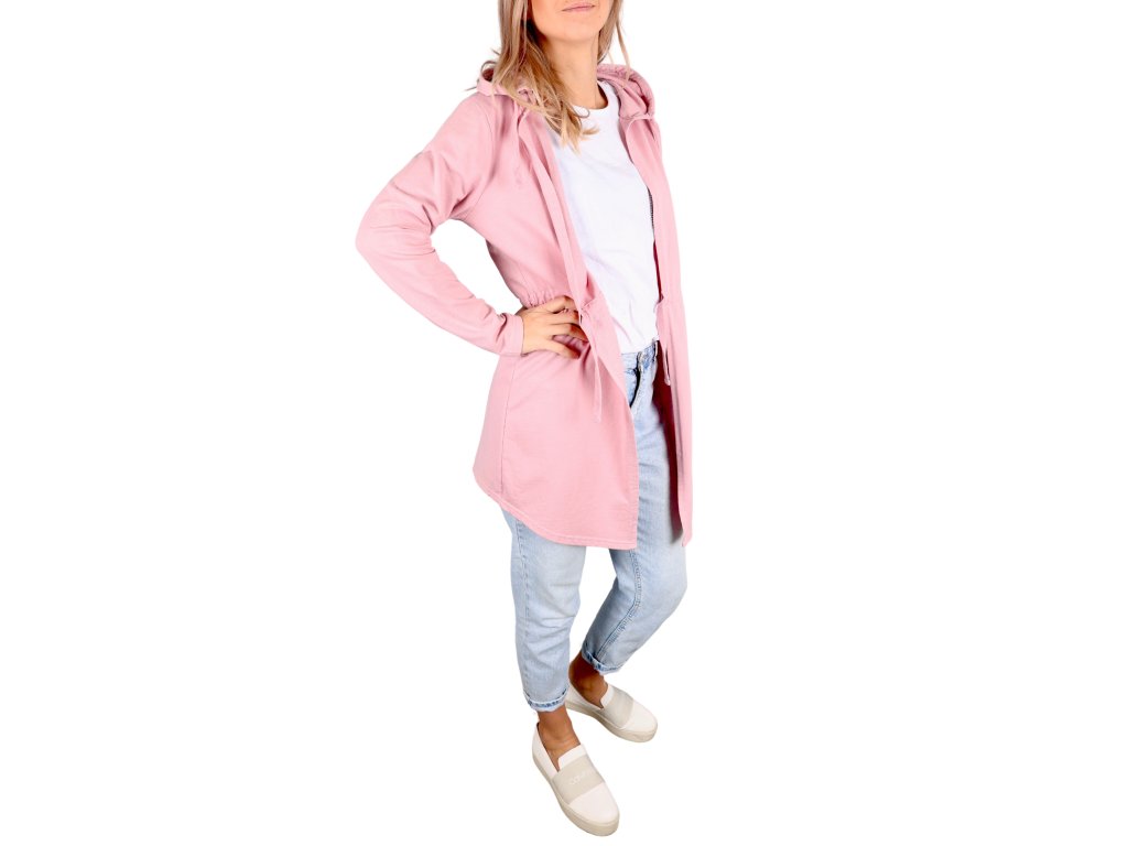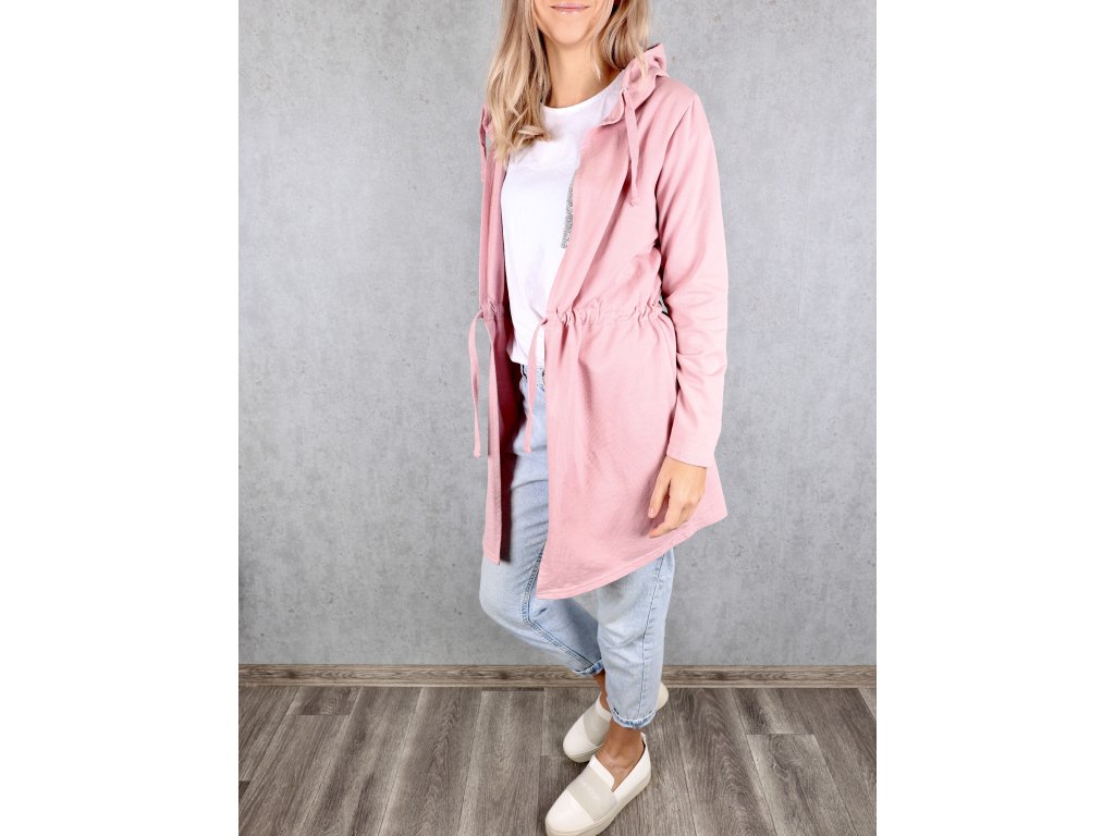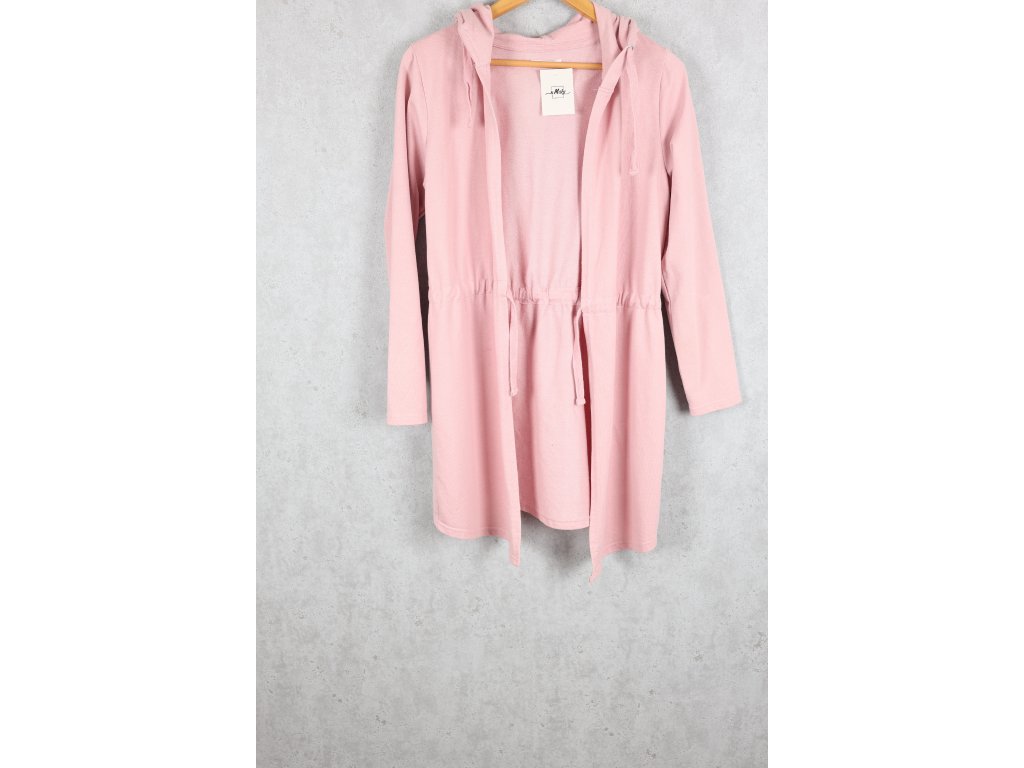 Je to spíše rozepínací mikina, v pase se dá stáhnout. Má kapuci a je krásně dlouhá. Vypadá nenošeně:)